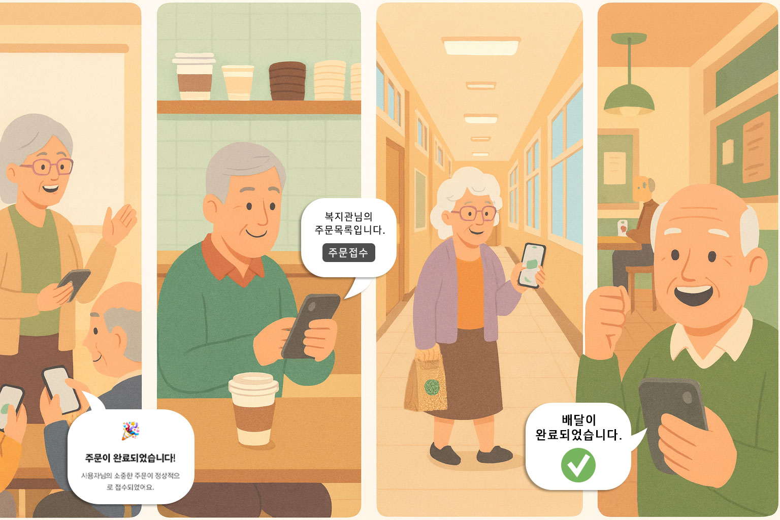 복지관에서도 직접 주문·결제·배달 과정을 체험하며 자립 능력, 사회성, 직업 역량을 동시에 학습할 수 있는 체험형 모바일 교육 솔루션