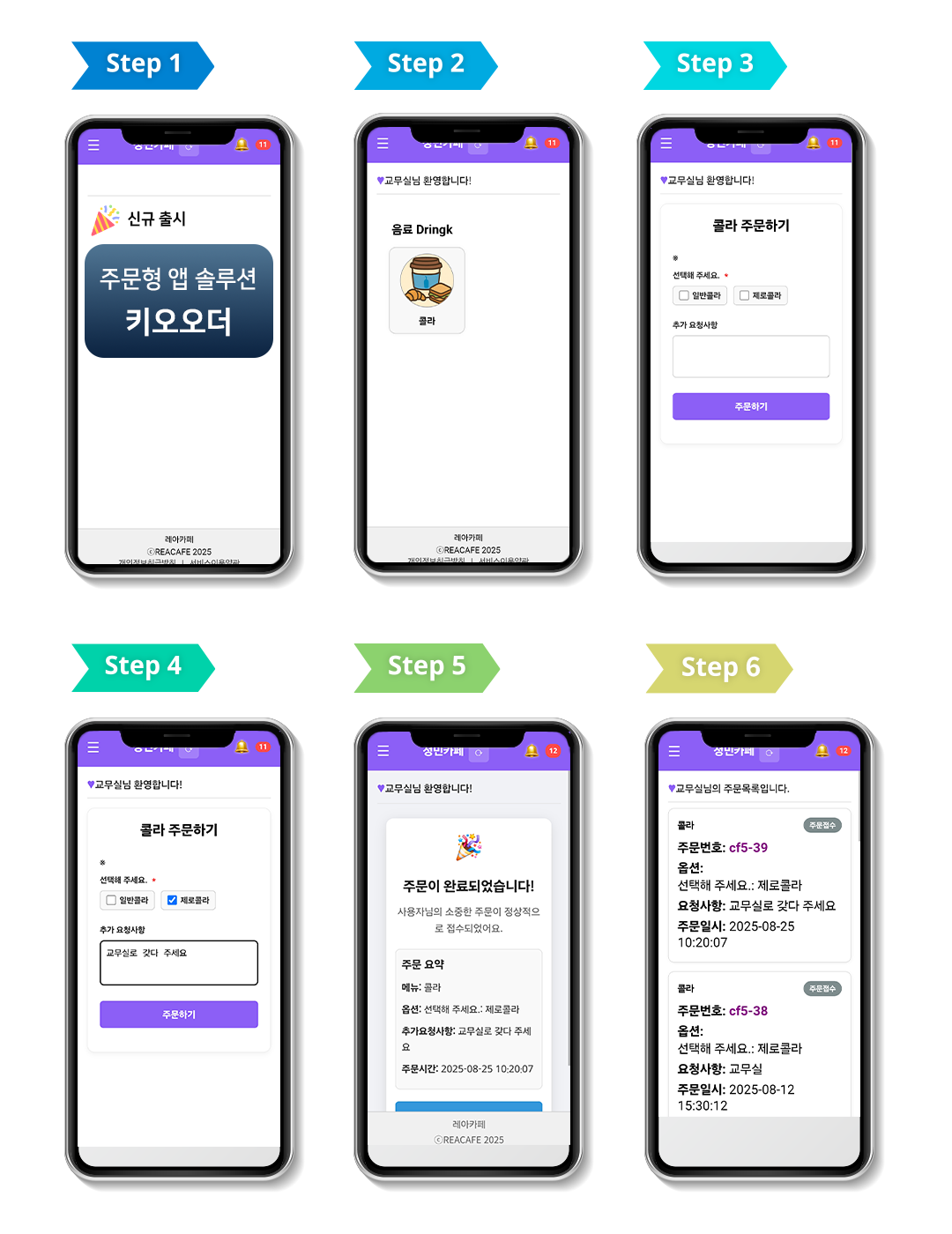 STEP4. 요청사항 전달 STEP5. 주문완료 STEP6. 주문내역확인